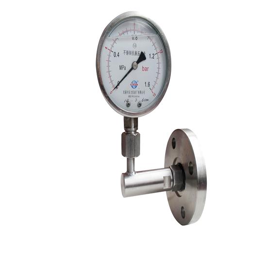 該類儀表以隔片隔離裝置將被測介質(zhì)與壓力表表頭分開,以滿足保護(hù)測量元件和特殊適用場合的測壓需求。廣泛用于石油、化工、醫(yī)藥、食品、造紙、噴涂等行業(yè)測量具有強(qiáng)腐蝕性、高粘度、易結(jié)晶、含有固體顆粒的液體介質(zhì)壓力。